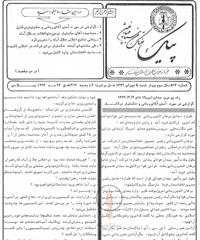 1- گزارشی در مورد آمدن آقای ربانی و حکمتیار در کابل