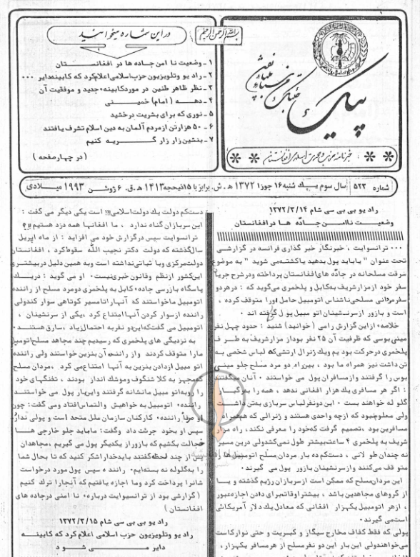 2- رادیو و تلویزیون حزب اسلامی اعلام کرد که کابینه دایر