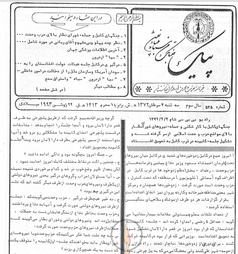 5- درگیری در کابل جلسه هیئات دولت افغانستان را به
