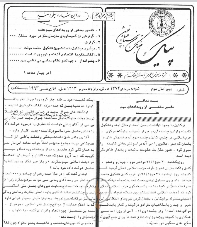 خبرنامه «پیک وحدت» سال چهارم (1372) شماره 536