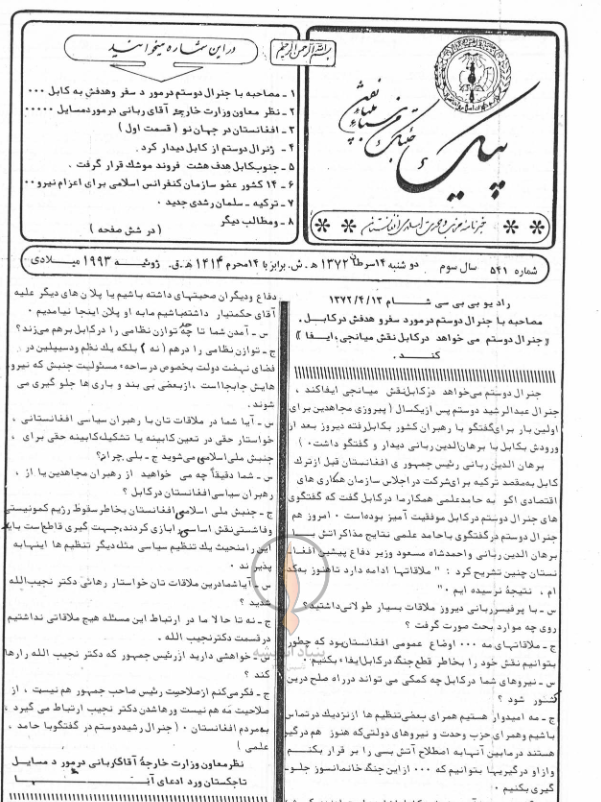 1- مصاحبه با جنرال دوستم در مورد سفر وهدفش به کابل