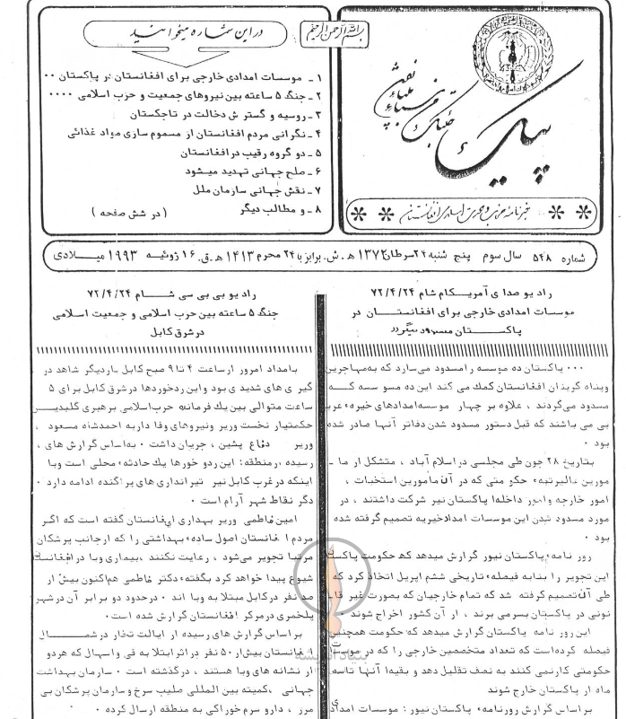 2- جنگ 5 ساعته بین نیروهای جمعیت و حزب اسلامی