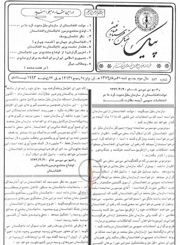 1- دولت افغانستان از سازمان ملل دعوت کرد تا در