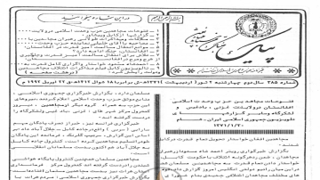 خبرنامه «پیک وحدت» سال سوم (1371) شماره 385